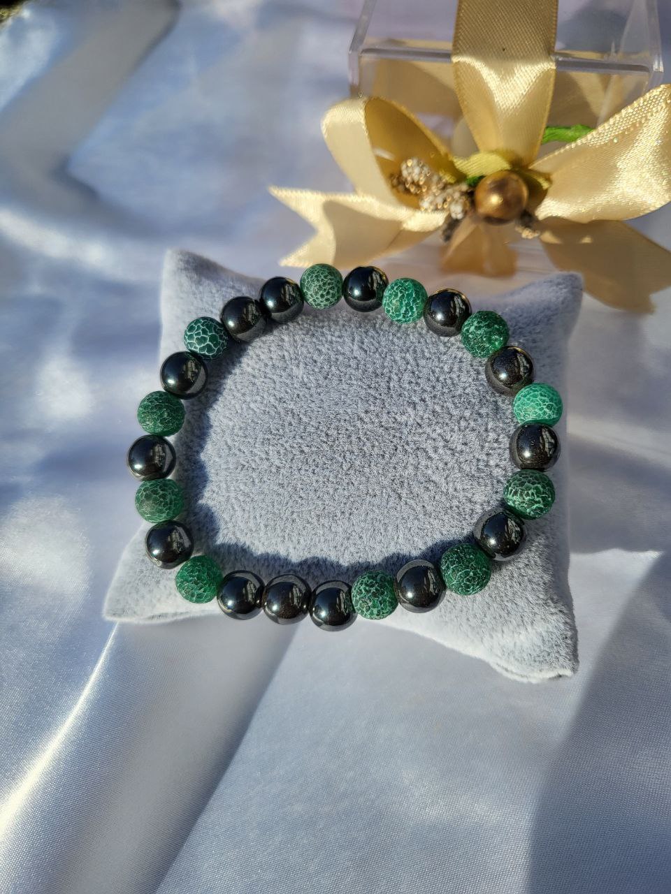 Mix Natural Green Weathered Agate and Hematite Bracelet, 8mm, Unisex